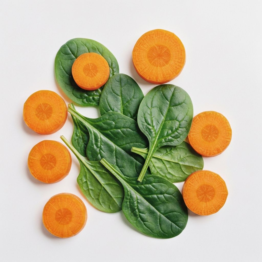Orange und gelbe Gemüse: Karotten enthalten hohe Mengen an β-Carotin (Vitamin-A-Vorstufe), das der Körper zu Retinol umwandeln kann. Auch andere karotinoidreiche Pflanzen wie Kürbis oder Süßkartoffeln sind gute Quellen.